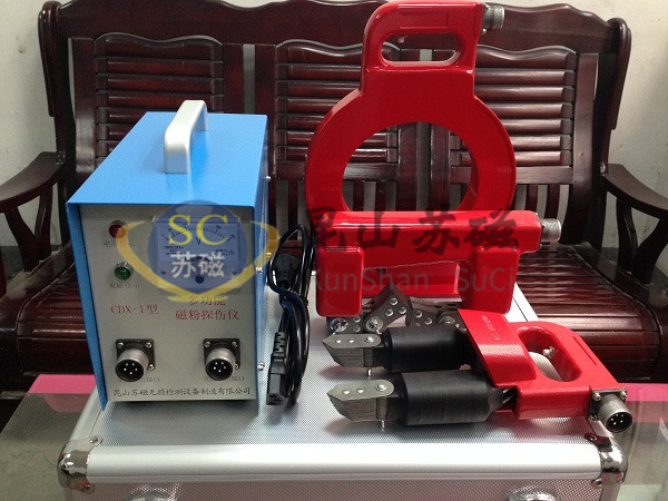 O型探頭:也稱環(huán)形探頭,內(nèi)徑:150㎜,中心磁場≥180Oe.重量:2.5㎏.獨立利用這種探頭制成一臺設(shè)備叫環(huán)形探傷儀,它是利用線圈通電時產(chǎn)生強磁場的原理設(shè)計的,適用于軸棒類、管道類、葉片類等復(fù)雜工件的分段探傷或退磁。